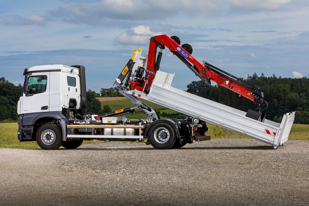 Pritschen mit Alubordwände, Schiebeverdeck und LadebordwandHYVA Hakenabroller mit HMF Kran auf AbrollpritschePritsche in Niedrigbauweise mit HMF Ladekran3-Seitenkipper mit HMF LadekranBaumaschinentransporter mit hydraulischen RampenHYVA Hakenabroller mit AbrollpritscheHMF Ladekran und HYVA Hakenabroller
