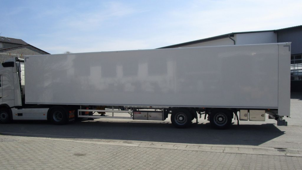 Kofferauflieger mit zwei zwangsgelenkten Achsen und kundenspezifischem Andocksystem